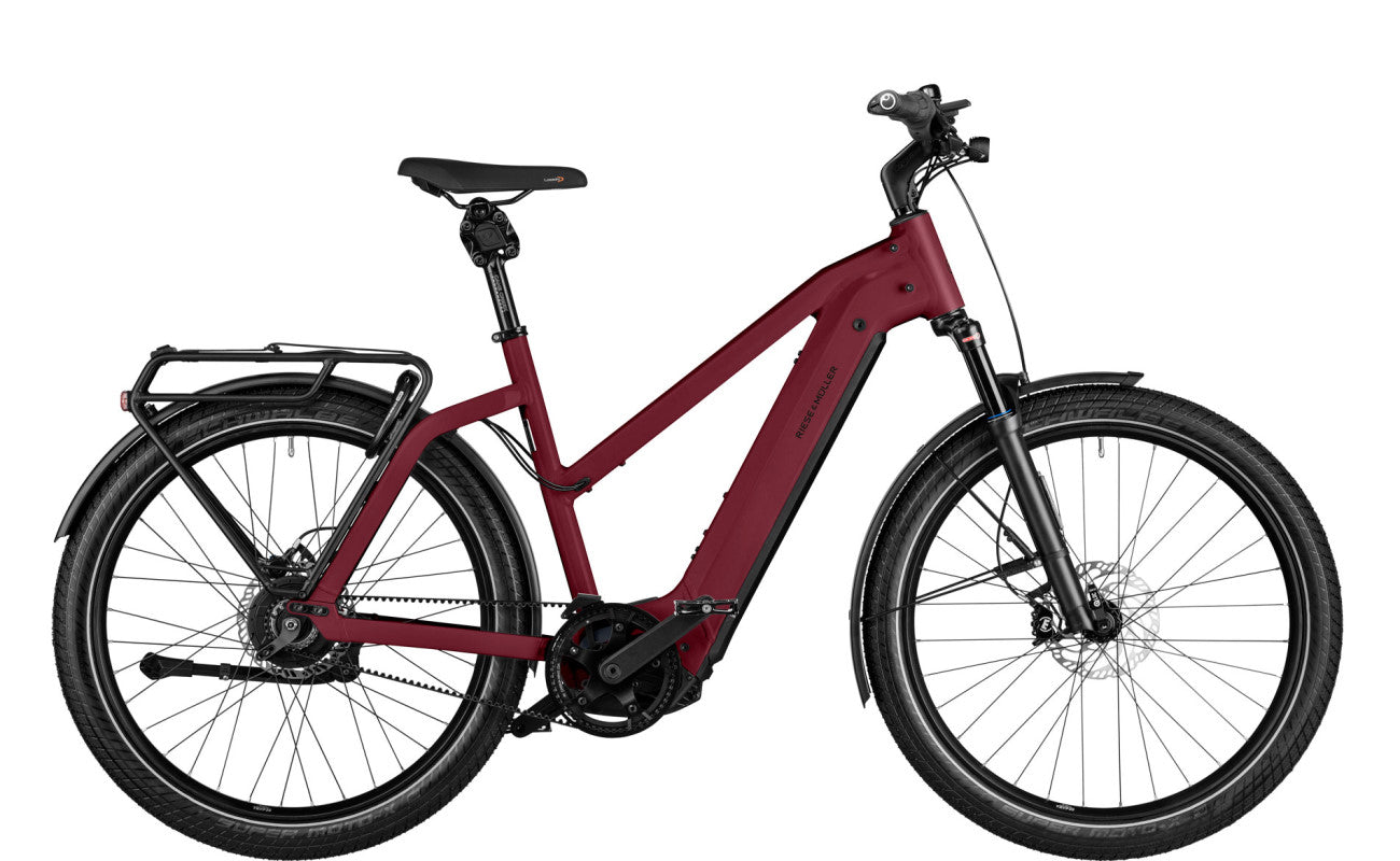 La Charger4 Mixte è l'e-bike da usare tutti i giorni per il piacere infinito di pedalare. Il tubo superiore leggermente ribassato consente di salire e scendere in tutta comodità. Grazie alla batteria da 750 Wh completamente integrata, è la compagna ideale per la vita quotidiana e molto altro. La forcella e il reggisella ammortizzato garantiscono un elevato comfort in sella e consentono di pedalare in modo confortevole e sicuro sia su strade sterrate che sull’asfalto. Componenti intelligenti come il versatile portapacchi e la luce diurna con un potente fascio luminoso sono adatti sia per chi va al lavoro tutti i giorni in bicicletta, sia per un lungo tour nel fine settimana in caso di vento e intemperie.